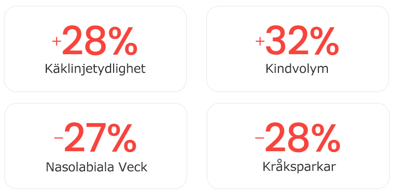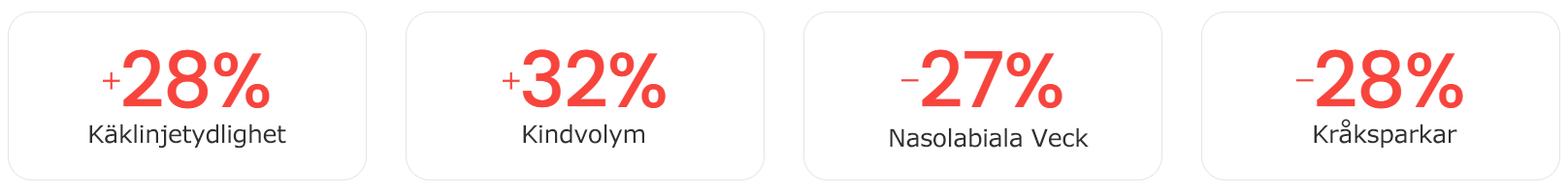 - Stramar omedelbart upp och lyfter ansiktet samtidigt som svullnad minskar och käklinjen definieras.
